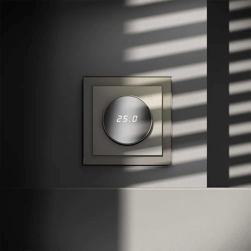Терморегулятор полностью совместим с пластиковыми и стеклянными рамками серии S70, позволяя создать цельную, стильную композицию на стене вместе с розетками, выключателями и другими устройствами.