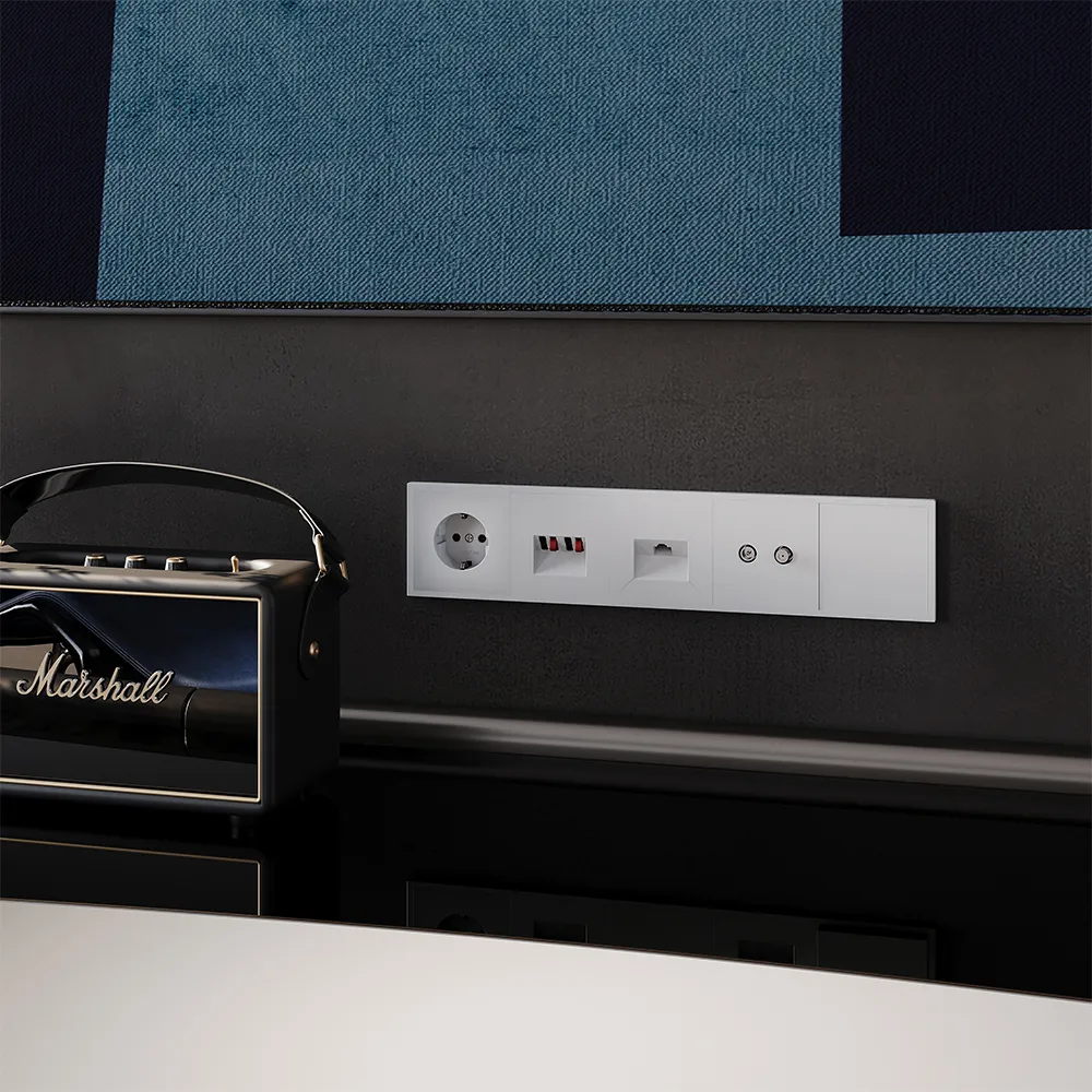 Розетка легко комбинируется с другими устройствами серии — например, можно разместить рядом электрическую розетку для питания ТВ и USB-порт для приставки в одной рамке, создав функциональный и стильный блок управления.